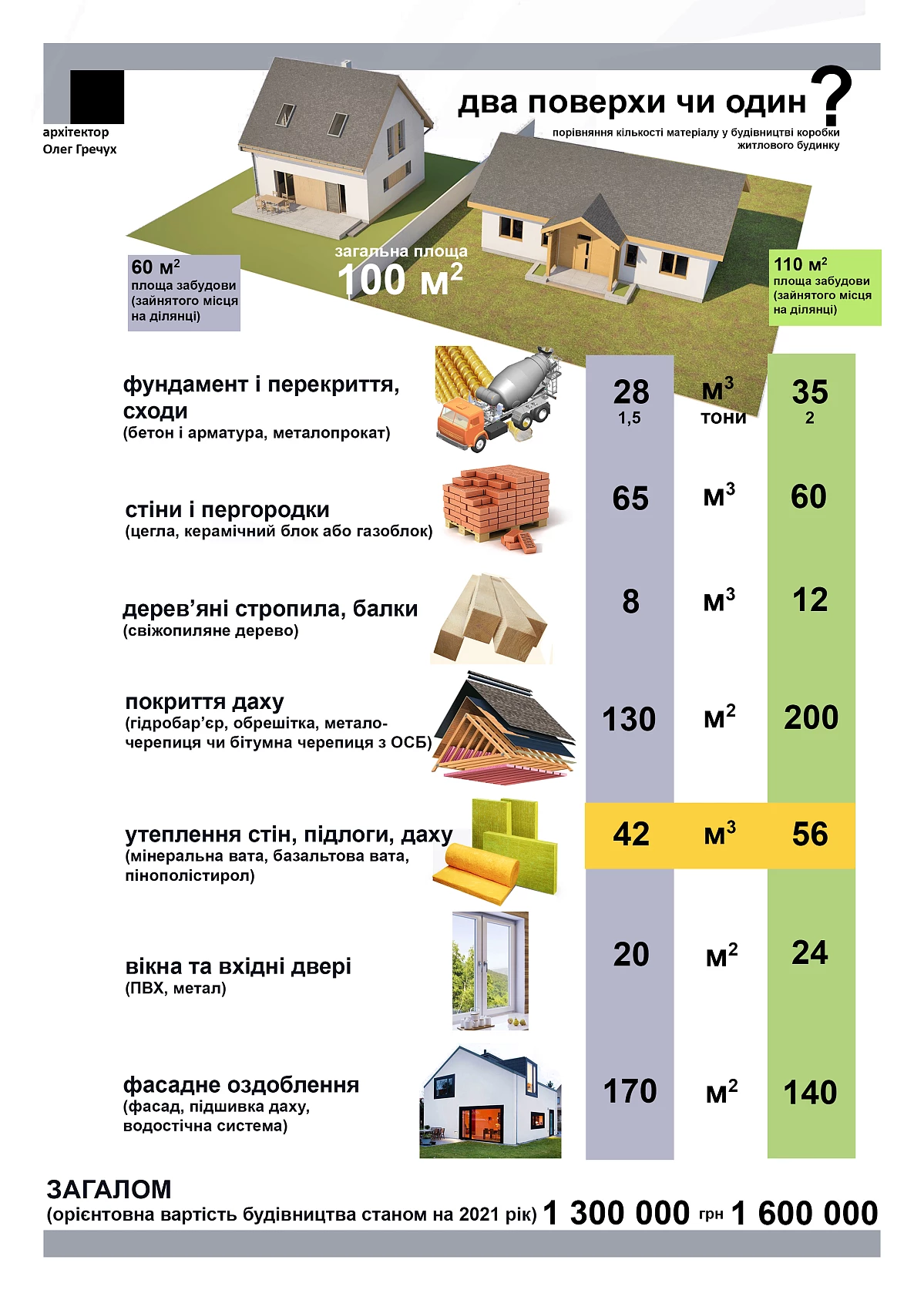 У 2025 році середня вартість квадратного метра будівництва в Україні коливається від 16 000 до 35 000 гривень. Наприклад, будинок площею 100 м² обійдеться вам у 1 600 000 – 3 500 000 гривень.